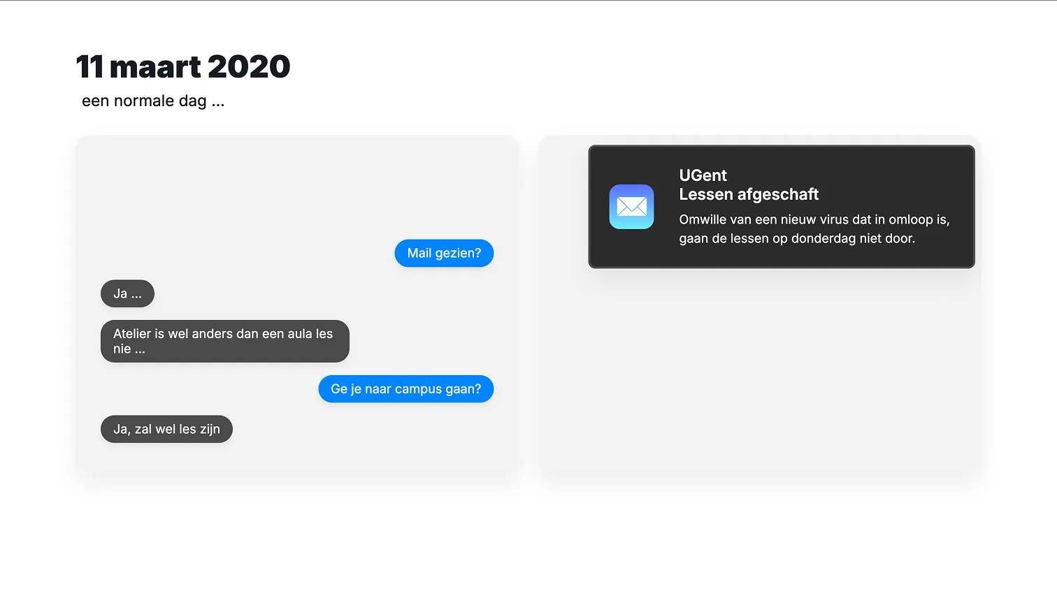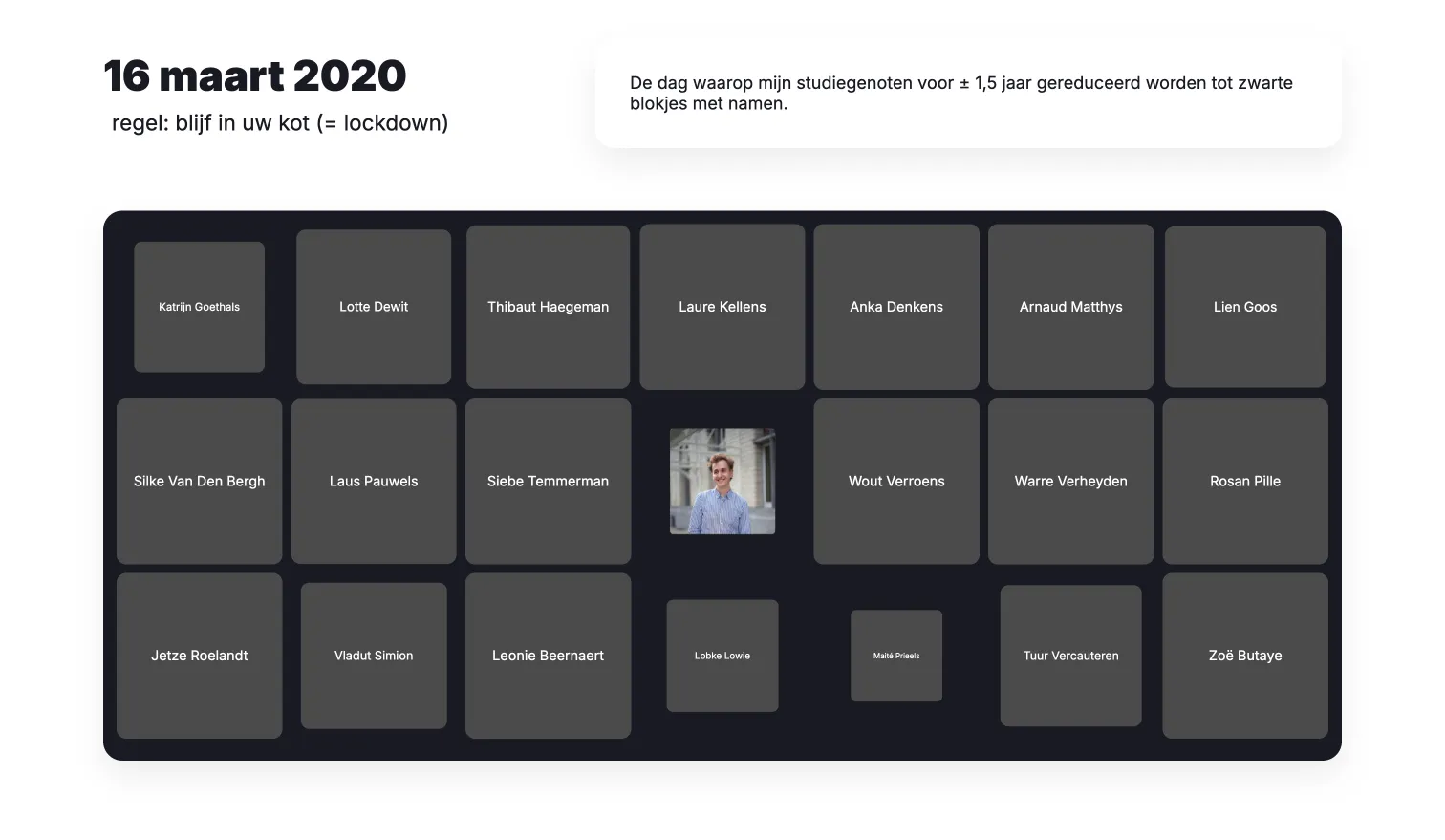 I chose to tell the story of the pandemic, one of the most impactful times of my life. I had just moved into a dorm, finished my first exames at the university and tried to make new friends. Then, suddenly, everything shut down. For the next two years, my entire world moved online.