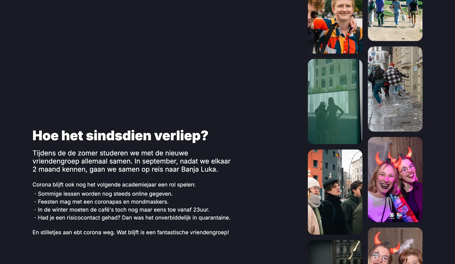 It was a strange and lonely time, and making friends felt almost impossible. But somehow, in the middle of all that chaos, I found an amazing group of friends. We connected because we were all going through the same thing together. I’m incredibly grateful I met them. This website is my way of telling that story.